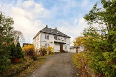 Stor, vakker trevilla med masse potensial - 6 sov/5 bad - Stor tomt, flotte uteplasser og balkong- Dbl.garasje - Uthus