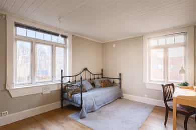 Vakker trevilla opprinnelig oppført med kolonial fra 1920 tallet, brukt som familie og kunstnerbolig siden 2008. Sjelden mulighet til å anskaffe seg et stort, innholdsrikt hjem med herlige kvaliteter. Dobbelgarasje på 44 kvm (innredet som atelier) Uthus/redskapsbod på 14 kvm. Balkong på 7 kvm. 6 soverom og 5 bad Tomt på nesten 1,3 mål med nydelige solforhold Store uteplasser med jacuzzi og sittegrupper Nydelige detaljer som bredt listverk, heltre gulv m.m. Svært innholdsrik bolig med stort potensial Moderniseringsbehov innredet kjeller med to deler med egen inngang Innredet loft Flott beliggende med "alt" like utenfor døren Nydelig nærmiljø med grønne lunger og parker innen kort gangavstand Svært barnevennlig