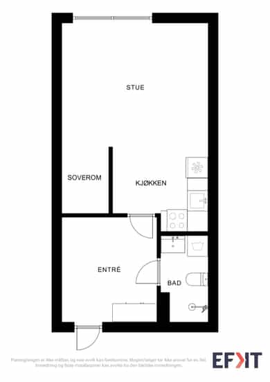 • REMA 1000 i samme bygg. Leiligheten inneholder entré, bad og stue/kjøkken/soverom, og har et bruksareal (BRA-I) på 32 m². Husk påmelding til visning!