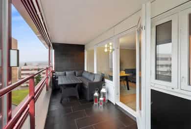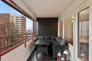 Balkongen vender mot sørvest og har sol store deler av dagen.