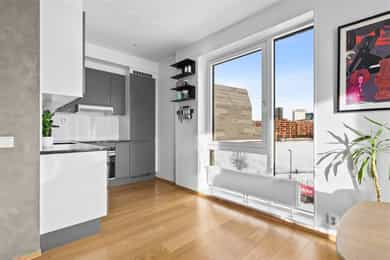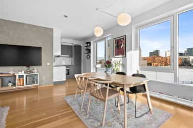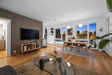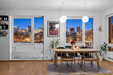 Nordvik avd. Frogner har gleden av å presentere Sørengkaia 9 - En lekker og moderne hjørneleilighet med solrik balkong og fantastisk fjordutsikt. Hjørnebeliggenheten gir store vindusflater og lys fra flere kanter helt uten innsyn. Boligen byr på stor og luftig stue, med fantastisk skyline-utsikt, kjøkken, romslig soverom, walk-in/bod og bad. Et lite boligparadis ved vannet med førsteklasses byliv, badeliv, uteliv og kulturliv rett utenfor døren Høydepunkter: