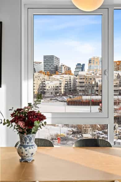 Sørengkaia 9 har en særdeles attraktiv og sjønær beliggenhet ytterst i den moderne Fjordbyen i Oslo, omgitt av sjø på tre sider og med umiddelbar nærhet til parker, havnepromenade og noen av byens mest ettertraktede kultur- og fritidstilbud. Her bor du luftig og fritt med sjøen som nærmeste nabo - samtidig som du har sentrum rett i nærheten. Fra området nyter du vakker utsikt mot Ekeberg, Oslofjorden og det pulserende Barcode med Oslos karakteristiske skyline. Nabolaget kombinerer det urbane med det maritime - et levende og moderne bomiljø med alle servicetilbud lett tilgjengelig, og sjø, natur og rekreasjonsområder rett utenfor døren. Langs havnepromenaden finner du et bredt utvalg restauranter, kafeer og utesteder. Helt ytterst på Sørenga ligger det populære Sørenga sjøbad med stort badebasseng, barnebasseng, solplasser og romslige aktivitetsområder. Her finner du også Sentralparken, Sørengas grønne lunge, samt Den Norske Turistforening sitt friluftshus med tilbud som kajakkutleie, klatrevegg, kurs og innendørs trening. Området byr på fine turstier, grøntområder og enkel tilgang til øyene i Oslofjorden, med yrende båtliv gjennom sommerhalvåret. På få minutters gange når du Barcode og Bjørvika med et rikt tilbud av restauranter, treningssentre, gallerier og kulturarenaer. Blant høydepunktene finner du MUNCH, Den Norske Opera & Ballett og Deichman Bjørvika - alle i umiddelbar nærhet. Samtidig har du kort gangavstand til byens mest kjente handlegate, Karl Johans gate, med et bredt utvalg av butikker, kjøpesentre, serveringssteder og servicetilbud. Herfra strekker sentrumstilbudet seg videre mot Nationaltheatret og Slottet, noe som understreker den sentrale og attraktive beliggenheten. Dagligvaretilbudet i området er svært godt, med flere butikker i umiddelbar nærhet. I tillegg har en stor og moderne MENY-butikk åpnet like ved, med ferskvaredisker og bredt vareutvalg, samt Vinmonopolet, Apotek 1 og flere hyggelige serveringssteder. For barnefamilier finnes det to barnehager på Sørenga og flere i nærområdet. Det planlegges også ny barne- og ungdomsskole i Bjørvika med forventet ferdigstillelse i 2027. Kun en kort spasertur unna ligger Oslo sentralstasjon (Oslo S), som samler byens beste kollektivtilbud på ett sted - med T-bane, buss, trikk, Flytoget og region- og fjerntog. Dette gjør hverdagslogistikken enkel og effektiv, og gir beboerne på Sørenga det beste fra to verdener: en rolig, sjønær atmosfære – kombinert med umiddelbar nærhet til sentrum og byens viktigste knutepunkt.
