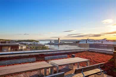 Lekker og stor 2-roms hjørneleilighet med fantastisk fjordutsikt, balkong og åpent utsyn mot park - Sjelden anledning