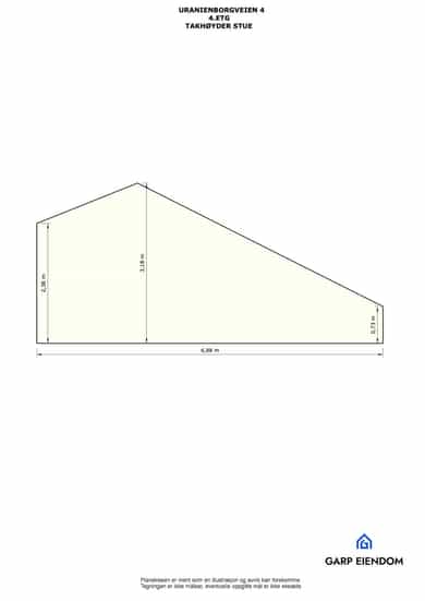 Hems er ikke måleverdig areal grunnet for lav takhøyde (ALH). Hemsen er ikke et eget godkjent etasjeplan.
