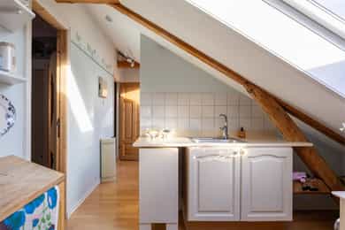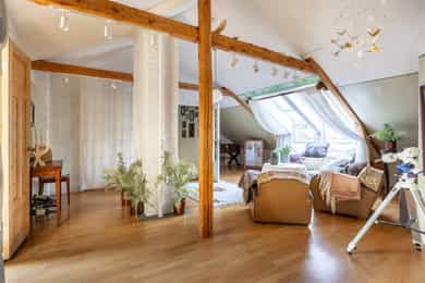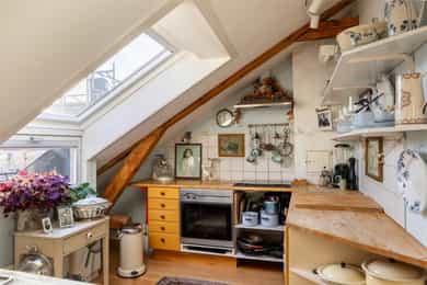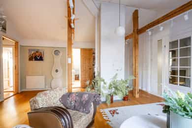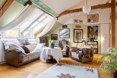 Romslig 5-roms toppleilighet bak slottet.3,18 m takhøyde. Oppussingsobjekt. 2(3) soverom. 152 kvm gulvareal