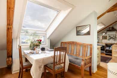 Boligen ble kjøpt i 2012. Selger har bodd i boligen de siste 12 månedene. Samsvarserklæring: Det fremgår av selgers egenerklæringsskjema at det foreligger samsvarserklæring for det elektriske arbeidet i boligen. Det tas forbehold om at det kan være utført andre arbeider på det elektriske anlegget som ikke har samsvarserklæring. Selgers egenerklæringsskjema følger vedlagt salgsoppgaven. Interessenter oppfordres til å gjennomgå dette nøye. Følgende opplysninger er spesielt viktig å merke seg: 1. Vet du om det har det blitt utført arbeid på bad/våtrom, enten i din eller tidligere eiertid? Ja, faglært Firmanavn: M-Tek AS, 14.des 2022 Beskrivelse: M-Tek AS har skjøtet brudd varmekabler + ny termostat 14.des 2022 Nytt blandebatteri dusj for ca 8 år siden men husker ikke hvilken 1.2. Vet du om det finnes dokumentasjon på hvordan bad eller vaskerom er bygget opp? Ja, faglært Firmanavn: Byggmester Andreas Anker Schultz, 1993-1995 Beskrivelse: Byggmester Andreas Anker Schultz innredet råloftet i 1993-1995 (har alt av dokumentasjon arkivert) 2. Vet du om det er gjort endringer eller reparasjoner på tak, fasade, pipe/ildsted, terrasse, garasje, bod eller lignende, enten i din eller tidligere eiertid? Ja, faglært Firmanavn: Øyvind Steen, 1995 Beskrivelse: Øyvind Steen 1995 - nytt utvendig tak betalt over vår seksjon 11 -påkostet av min eks-familie Wenk-Wolff ca 2024: Boder i kjeller har fått innvendig brannsikring i form av gipsplater i tak og nye lysarmaturer Ny murpuss innvendig kjeller for ca 10 år siden nå Ca 2024: Renovering / avstengning piper som ikke er i bruk for å spare kostnader Ca 2024: Ny eltavle kjeller som forsyner Sameiet samt montering el-bil-ladere bakgård 4. Vet du om det er gjort arbeid på det elektriske anlegget, enten i din eller tidligere eiertid? Ja Firmanavn: Elfikseren, 2019; SMS-Elektro A/S, 1.mars 2024 Beskrivelse: 2019 (?): Elfikseren - tok ned panelovner og spotter i 2 kontor-rom som hadde vært barnerom og la opp nye stikkontakter rundt 2 vinduer samt ny automatsikringsboks som sitter i kjøkkenet. Etter tilsyn Elvia i februar 2025 var det nødvendig å utbedre ytterligere 2 rom for jordingskontakter - så da la Elfikseren om til jording 2 rom mai 2025 1.mars 2024 : SMS-Elektro A/S tok ned alt av varme-spotter som sto igjen med armatur og la nye led-skinner med spotter i nær sagt alle rom inkl bad 4.1. Vet du om det elektriske anlegget har blitt kontrollert? Ja Firmanavn: Elvia Beskrivelse: Kontrollen ble utført i mai 2025 av Elvia 4.2 Er det installert el-billader på eiendommen/boligen? Nei Eventuell kommentar: Vi er eneste leilighet uten oppstillingsplass i bakgård eller ladestolpe etter loddtrekning mellom de 2 loftsleilighetene før jeg flyttet inn 5. Vet du om det er gjort arbeid på vann og avløp, enten i din eller tidligere eiertid? Eventuell kommentar: Alt av vann og avløp har fungert fint for vår leilighet 6. Vet du om boligen eller eiendommen har blitt endret eller bygget ut etter opprinnelig byggeår, enten av deg eller tidligere eiere, herunder bruksendringer kjeller/loft etc.? Ja Beskrivelse: Elektrisk var 1 lampeoppheng via stikkontakt som ble muntlig godkjent av Elvia da de var på befaring 11. Vet du om det er eller har vært feil ved bad/vaskerommet, f.eks sprekker, lekkasje, råte, lukt eller soppskader? Ja Beskrivelse: Badet er fra 1993 og etter standard modent for utskiftning. Vi har fuget med silikon langs gulv i dusj for å unngå vanninntrengning til membran. Noe av fugemasse er smuldret der det ikke kommer vann fra dusj. Ikke mugg i bad. Toalettet er skiftet ut da den gamle sisternen fikk en sprekk uten lekkasje etter at en besøkende satte seg tungt ned og bakover. 12. Vet du om det er eller har vært problemer med mur/pipe/ilsted, for eksempel dårlig trekk, sprekker, pålegg, fyringsforbud eller liknende? Ja Beskrivelse: Sameiet besluttet å stenge pipeløp som ikke var i bruk pga kostnader til å reparere alle pipene. Vi har ikke peis eller peisovn men pipe er lagt opp til kan åpnes dersom det i fremtiden ønskes. 13. Vet du om det er eller har vært feil med dreneringen? Eller om det er eller har vært fukt, sopp eller råteskader i underetasjen, kjeller eller krypkjeller? (herunder også sameiet/borettslagets fellesarealer) Ja Beskrivelse: For ca 20 år siden ble alle bærebjelkene i kjeller skiftet ut pga fuktskader. Ved enorme nedbørsmengder kommer vann inn via lufterør til gate inn i enkelte deler av kjeller - men ikke mye. Dette har skjedd ved ekstremvær. 14. Vet du om det er feil/utettheter i tak, terrasser/fasade/vinduer/garasje, og/eller er det synlige skader? Ja Beskrivelse: Loftsvinduene både i vår og naboens leilighet bærer preg av tidens tann. Vi har skiftet ut 2 stk Velux-vinduer (kjøkken, stue) og 1 vindu har plastlukker brukket så lar seg ikke lukke. 2 av Veluxvinduene ble skiftet ut for få år siden - et i stue og 1 i kjøkken. Vet ikke noe om utettheter i tak. Det ble montert varmekabler i takrenner for å unngå danning av istapper. Det er på Sameiemøte vedtatt å legge netting for å stoppe isen som varmekablene ikke klarer å smelte. Vi rydder snø etter større snøfall utenfor vinduer i loftsleilighetene. Fasade trenger nok oppussing - stammer mest fra før utbedrding takrenner som ikke fikk unna mengdene gjennom regn eller gjennom snøsmeltingen før varmekabler ble lagt inn. Vi har ikke terrasse. 15. Vet du om det er eller har vært feil med det elektriske anlegget? Nei Eventuell kommentar: Sameiet har oppgradert el-tavle mm i kjeller 16. Vet du om det er eller har vært sprekker i mur/skjeve gulv/setningsskader eller liknende? Nei Beskriv: I vår leilighet siger det litt midt i leiligheten i inngangsparti og mellomrom - dette sees best på tapet i hjørner. 18. Vet du om det er, eller har vært, insekter eller skadedyr i boligen, eller i tilhørende bygninger? For eksempel skjeggkre, maur, biller, mus, rotter eller lignende. Ja Beskrivelse: Det hender et og ann