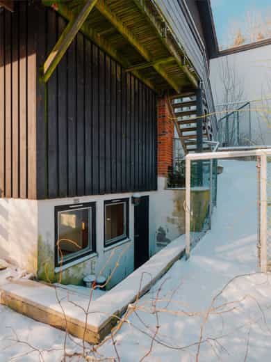 Halvpart av tomannsbolig med spektakulær beliggenhet på solrik utsiktstomt. Innerst i rolig stikkvei med panoramautsikt og direkte adkomst til Nordmarkas løypenett. Boligen har en spennende planløsning over fem halvplan med store glassflater, luftig romfølelse og god takhøyde. Et totalrehabiliteringsobjekt med stort potensial og godt utgangspunkt for å skape drømmehjemmet.