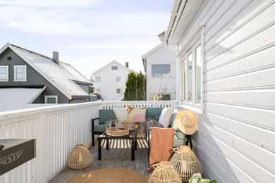 Selgers egenerklæringsskjema følger vedlagt salgsoppgaven. Interessenter oppfordres til å gjennomgå dette nøye. Følgende opplysninger er spesielt viktig å merke seg: 1. Vet du om det har det blitt utført arbeid på bad/våtrom, enten i din eller tidligere eiertid? Ja, både faglært og ufaglært Firmaets navn og beskrivelse av arbeidet: Vår eiertid: Egen innsats (2022): Lagt base til mikrosement oppå eksisterende fliser, gipsplater i tak og malt med våtromssmaling, helsparklet vegg med våtromssparkel og malt med våtromsmaling. Rørlegger (Osv. Sivertsen - 2022): Montert dobbelservant og koblet opp vann og avløp mot dobbelservant og nytt toalett, samt fuging. Mikrosement (2022): Zenzorama Stavanger har lagt mikrosement. Elektriker (Rogaland Elektro - 2022): Montering av speil på vegg og ny stikkontakt på bad. Tidligere eiertid: Montering av dusjkabinett av Petersens Multiservice i 2019. 1.1 Vet du om tettesjikt, membran eller sluk ble fornyet eller oppgradert? Nei Eventuell kommentar: Ikke oppgradert. 1.2 Vet du om det finnes dokumentasjon på hvordan bad eller vaskerom er bygget opp? Nei Eventuell kommentar: Tilgjengelig dokumentasjon ifbm utført arbeid i vår eiertid: Faktura med beskrivelse av utført arbeid fra rørlegger. Samsvarserklæring fra elektriker. 2. Vet du om det er gjort endringer eller reparasjoner på tak, fasade, pipe/ildsted, terrasse, garasje, bod eller lignende, enten i din eller tidligere eiertid? Ja, ufaglært Arbeid som er utført: Tidligere eiertid: Tidligere eier har byttet terrassebord og terrassedør i 2019. Terrassedør byttet ved hjelp av tømrer. 3. Vet du om det er gjort arbeid med drenering, enten i din eller tidligere eiertid? Nei Eventuell kommentar: Nei, ikke vår eiertid. 4. Vet du om det er gjort arbeid på det elektriske anlegget, enten i din eller tidligere eiertid? Ja Foreligger det en samsvarserklæring? Ja Firmaets navn og beskrivelse av arbeidet: Vår eiertid: Rogaland Elektro: Byttet dimmer i stua, samt ny stikkontakt på bad. Samsvarserklæring foreligger. b|e elektro: Installasjon av spotskinne og ny dimmer på loft. Tidligere eiertid: Stavanger Elektro: Montert to stikkontakter og to jordfeilautomater ifbm. oppussing av kjøkken i 2016. OneCo: Montert 16 amp. sikring ifbm. oppkobling av ladestasjon for elbil i 2018. Samsvarserklæring foreligger fra begge bedriftene. 4.1 Vet du om det elektriske anlegget har blitt kontrollert? Nei Eventuell kommentar: Nei, ikke i vår eiertid. 4.2 Er det installert el-billader på eiendommen/boligen? Ja, faglært Firmaets navn og beskrivelse av arbeidet: Montert av OneCo i 2018. Samsvarserklæring foreligger. 5. Vet du om det er gjort arbeid på vann og avløp, enten i din eller tidligere eiertid? Ja, faglært Firmaets navn og beskrivelse av arbeidet: Vår eiertid: Rørlegger (Osv. Sivertsen): Koblet opp vann og avløp mot dobbelservant og nytt toalett. Utført i 2022. Rørlegger (Rørlegger Gunnar Larsen): Installert ny varmtvannsbereder i kjeller. Utført i 2025. Tidligere eiertid: Ivan & Kjetil Rør AS: Montering av Waterguard ifbm. oppussing av kjøkken i 2016. 6. Vet du om boligen eller eiendommen har blitt endret eller bygget ut etter opprinnelig byggeår, enten av deg eller tidligere eiere, herunder bruksendringer kjeller/loft etc.? Nei Eventuell kommentar: Nei, ikke i vår eiertid. Seksjonering vedtatt av Stavanger kommune i 2009. 11. Vet du om det er eller har vært feil ved bad/vaskerommet, f.eks sprekker, lekkasje, råte, lukt eller soppskader? Ja Beskriv: Vår eiertid: 2026: Liten drypplekkasje fra den ene slangekoblingen mot blandebatteri på dusjkabinett. Utbedret ved at rørlegger skiftet pakninger på begge slangekoblingene. Tidligere eiertid: 2015: Fuktindikasjoner bak blandebatteri i badekar i 2. etg. Dette ble utbedret med nye pakninger på blandebatteri og ny tetning rundt rør. Ved måling i etterkant er det ikke påvist utslag på fuktmåler. 13. Vet du om det er eller har vært feil med dreneringen? Eller om det er eller har vært fukt, sopp eller råteskader i underetasjen, kjeller eller krypkjeller? (herunder også sameiet/borettslagets fellesarealer) Nei Eventuell kommentar: Ukjent når drenering ble etablert/oppgradert. 23. Vet du om det er utført tidligere arealoppmålinger av boligen, eller om boligens areal er oppgitt i dokumenter som salgsoppgave, takstrapport, tilstandsrapport, byggesøknad eller lignende? Ja Hvilket dokument og når er målingen foretatt? Boligens areal er oppgitt i tidligere salgsoppgave til å være 116 m2 BRA / 123 m2 BTA.