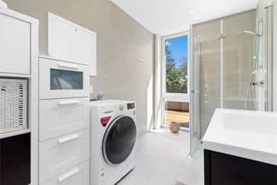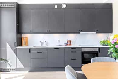 - Kjøkken: benkeplate og vannfast plater mellom kjøkkenbenken og overskap, oppgradert til den mest stillegående AEG-oppvaskmaskinen.