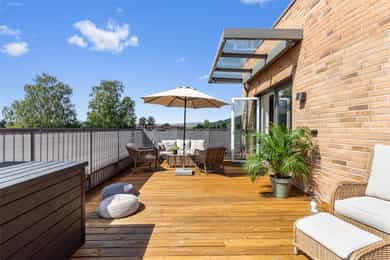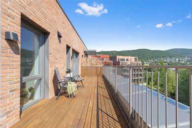 Strøken topp-og endeleilighet med nær 70 kvm privat terrasse - Gode solforhold - Sentralt - Høy standard og god takhøyde