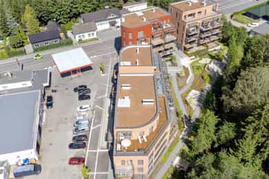 Området består av leiligheter, eneboliger og næring