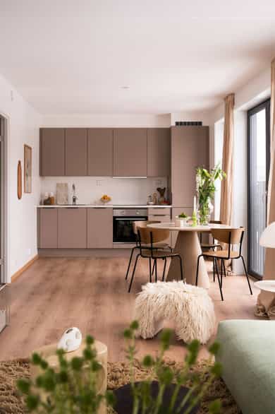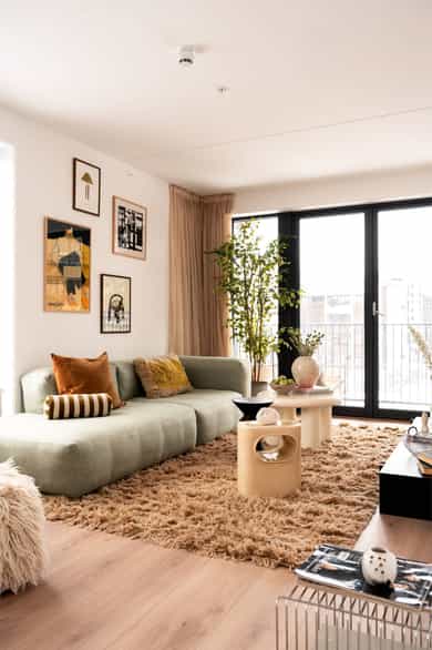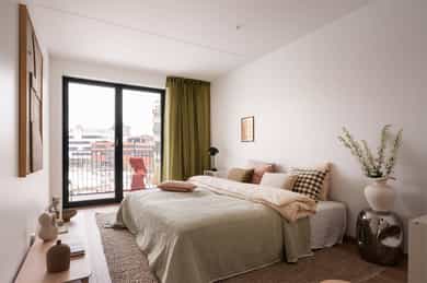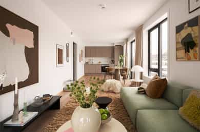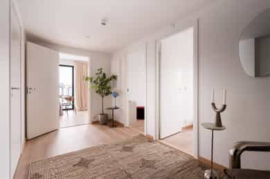 Ny og ubebodd 3-roms hjørneleilighet fra 2025 med attraktiv beliggenhet i bygget. Leiligheten har enkel adkomst via heis, store vindusflater med rikelig lysinnslipp og hyggelig utsikt. Direkte utgang til romslig balkong på 11 kvm. Tilgang til felles takterrasse med svært gode solforhold og flott utsikt. IN-ordning - Ved full innfrielse av fellesgjeld reduseres fellesutgiftene til kr 4.544 per måned. Fremtredende kvaliteter: