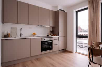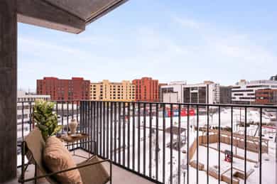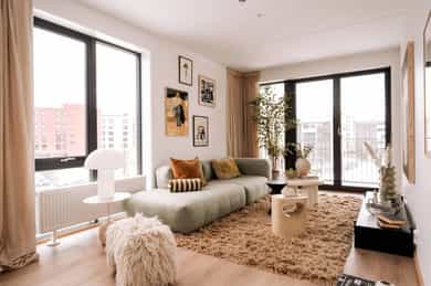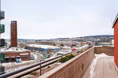 Ny og moderne 3-roms hjørneleilighet med stor balkong (11 kvm) og heis. Felles takterrasse. IN-ordning. *Garasjeplass