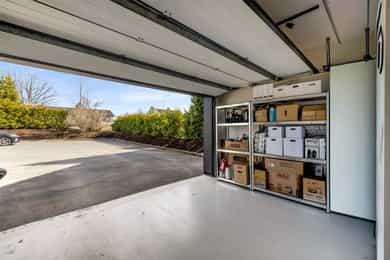 Boligen har integrert garasje med direkte adkomst til entré/sluse. Garasjen har port med elektrisk åpner og god takhøyde på ca. 2,6 meter. I tillegg er det gode parkeringsmuligheter på asfaltert gårdsplass foran garasjen. Det er installert ladeboks i garasjen, tilkoblet både strømnettet og styrt via app. Øvrig parkering etter områdets gjeldende bestemmelser.