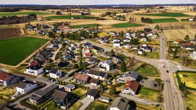 Boligen har en fin plassering sentralt på Kråkstad, kun 300 meter fra skolen og i umiddelbar nærhet til bussholdeplass. Tomten er pent opparbeidet med asfaltert gårdsplass foran garasjen og har overbygd inngangsparti på siden av garasjen. Det er også inngang direkte fra garasje til entreen, praktisk, spesielt på dager med ruskevær.