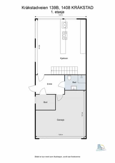 BRA-i: 82 kvm. Entré, bod, garasje, bad og kjøkken/spisestue.