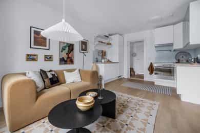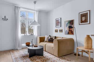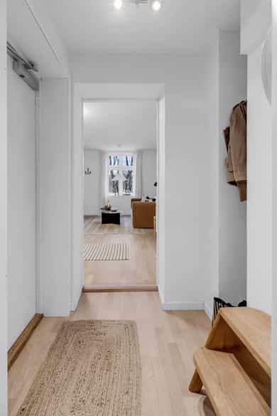 Leilighet beliggende i byggets 4. etasje. Det er adkomst via felles trappeoppgang. Oppgangen har porttelefon. Leiligheten inneholder entré, bad, soverom, kjøkken og stue. ENTRÉ: Velkommen inn! Leiligheten har en innbydende entré som skaper et umiddelbart godt førsteinntrykk. LYS OG LUFTIG STUE: Stuen fremstår lys og romslig med store vindusflater som gir rikelig med naturlig lys og flott utsikt mot Sofienbergparken. Den åpne og fleksible planløsningen gir gode møbleringsmuligheter, med naturlig plass til både sofagruppe, TV-møblement og spisebord. Gulvet er belagt med 3-stavs parkett som ble slipt og behandlet i 2026, og veggene er malt i lyse fargetoner. Rommet danner et utmerket utgangspunkt for å skape et personlig og innbydende hjem. ÅPEN KJØKKENLØSNING: Kjøkkenet er moderne og stilrent fra IKEA, med rikelig skap- og benkeplass. Innredningen har glatte fronter og heltre benkeplate med nedfelt vask. Benkeplaten ble slipt i 2026. Det er integrerte hvitevarer bestående av platetopp fra 2021, stekeovn, oppvaskmaskin og kombinert kjøl/fryseskap, samt kullfilterventilator over kokeplass. Varmtvannstank er diskret plassert i kjøkkeninnredningen. SOVEROM: Soverommet er romslig, med plass til dobbeltseng, nattbord og tilhørende møbler. De lyse fargevalgene på veggene, sammen med store vindusflater, skaper en lys og behagelig atmosfære. Soverommet har svært gode oppbevaringsløsninger med en hel vegg bestående av romslige, garderobeskap fra 2021. Skapene gir rikelig med plass til klær, sko og øvrig oppbevaring. BADEROM M/ADKOMST TIL BRANNBALKONG: Pent, flislagt baderom med downlights i himlingen og elektrisk gulvvarme. Badet er innredet med vegghengt klosett, servant nedfelt i innredning, speil med lys og dusjhjørne med svingbare glassdører. Det er opplegg for vaskemaskin. Naturlig avtrekk. Vaskemaskin fra 2025 medfølger. Fra badet er det utgang til en vestvendt brannbalkong med hyggelig utsikt mot bakgårdsområdet. Av hensyn til brannsikkerhet er det ikke tillatt å plassere møbler eller andre gjenstander på balkongen. OPPBEVARING: Leiligheten disponerer en kjellerbod med lav himlingshøyde, hvor gulvflaten er målt til ca. 3,7 m². Det gjøres særskilt oppmerksom på at bod som er medtatt som BRA-e og i totalt BRA ligger på fellesareal, men disponeres av denne leiligheten. ØVRIG INFORMASJON: Entrédør: Lyd- og brannklassifisert entrédør. Vinduer: Vinduer med 2-lags isolerglass. Balkongdør: Balkongdør med 2-lags isolerglass. En brannbalkong med adkomst fra bad. Innerdører: Glatt skyvedør. Glatt innerdør. Overflater, etc.: Himlinger med malte plater. Vegger med malte plater. Gulv med 3-stavs parkett, slipt og behandlet. Takhøyden i stuen ble målt til: 2,46 m. Ventilasjon: Boligen har naturlig ventilasjon. Elektrisk anlegg: Automatsikringer. Oppvarming: Boligen varmes opp av elektrisk varme. Elektrisk gulvvarme på bad.