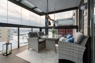 Leiligheten har innglasset balkong mot sydøst med fin morgen og formiddagssol.