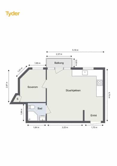 TBA: 2 kvm. Balkong med adkomst fra stue/kjøkken.