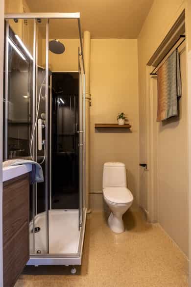 1. Vet du om det har det blitt utført arbeid på bad/våtrom, enten i din eller tidligere eiertid? Ja, ufaglært. Arbeid som er utført: Satt inn dusjkabinett og malte overflater i 2023. Flyttet dør og satt inn ny baderomsinnredning i 2025. 2. Vet du om det er gjort endringer eller reparasjoner på tak, fasade, pipe/ildsted, terrasse, garasje, bod eller lignende, enten i din eller tidligere eiertid? Ja, faglært. Firmaets navn og beskrivelse av arbeidet: Multiconsult byttet tak ifm renovering av bygget 4. Vet du om det er gjort arbeid på det elektriske anlegget, enten i din eller tidligere eiertid? Ja. Foreligger det en samsvarserklæring? Nei Beskriv arbeidet og hvorfor det ikke foreligger samsvarserklæring: Multiconsult installerte sikringsskap og nye kurser ifm renovering av bygget. I forbindelse med oppussing i 2025 ble noen stikkontakter flyttet på uten samsvarserklæring. Elektriker har befart arbeidet og gjort nødvendige målinger. 4.1 Vet du om det elektriske anlegget har blitt kontrollert? Ja. Når ble kontrollen utført? 25. februar 2026. 5. Vet du om det er gjort arbeid på vann og avløp, enten i din eller tidligere eiertid? Ja, ufaglært. Arbeid som er utført: Vaskemaskin, oppvaskmaskin og armatur på kjøkken og bad er koblet til vann og avløp. Arbeidene er gjort etter eksisterende stoppekraner. 14. Vet du om det er feil/utettheter i tak, terrasser/fasade/vinduer/garasje, og/eller er det synlige skader? Ja. Beskriv: Fasaden mot bakgården har ikke blitt renovert i nyere tid. 16. Vet du om det er eller har vært sprekker i mur/skjeve gulv/setningsskader eller liknende? Ja. Beskriv: Overgang mellom vegg og gulv bak dusjkabinett har en liten sprekk. Takstmann inspiserte skaden og sluk i 2024 og fant ingen fukt i betongen. 19. Vet du om det er eller har vært feil ved installasjoner slik som radiator, sentralfyr, varmepumpe, balansert ventilasjonsanlegg eller liknende? Ja. Beskriv: Sentralvarmeanlegget var feil innstilt en periode i 2025. Elektriker byttet trykktank og stilte det inn riktig i 2025. 22. Vet du om det foreligger skaderapporter eller tilstandsvurderinger etc. om boligen? Ja. Oppgi type rapport og årstall: Tilstandsvurdering utført av takstmann 24. februar 2026. 23. Vet du om det er utført tidligere arealoppmålinger av boligen, eller om boligens areal er oppgitt i dokumenter som salgsoppgave, takstrapport, tilstandsrapport, byggesøknad eller lignende? Ja. Hvilket dokument og når er målingen foretatt? Oppmåling utført av takstmann 24. februar 2026.