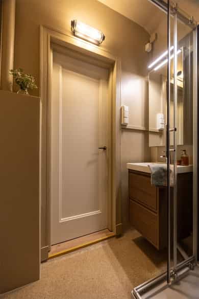 - Flyttet dør til bad fra soverom til stue/kjøkken.