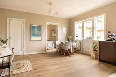 I samarbeid med Storebrand og HELP tilbyr Nordvik Boligkjøperpakke til våre boligkjøpere. Boligkjøperpakken er et gunstig forsikringskonsept som inneholder alle de forsikringene du trenger til den nye boligen din. Boligkjøperpakke Leilighet inneholder: Boligkjøperforsikring fra HELP, flytteforsikring og innboforsikring Super. Boligkjøperforsikring er en rettshjelpsforsikring som gir trygghet og profesjonell juridisk hjelp dersom det oppdages uventede feil eller mangler ved boligen. Forsikringen gjelder i 5 år fra overtakelsen. Flytteforsikring dekker skade på eiendeler under flytting ved plutselig og uforutsett hendelse som oppstår under transport eller i forbindelse med bæring mellom bolig, bil eller lagringssted. Forsikringen varer i 1 år fra budaksept. Innboforsikring Super dekker tingene dine ved blant annet tyveri, brann eller vannskader. Vår beste innboforsikring Super inkluderer blant annet uflaksforsikring, bistand ved ID-tyveri og psykologhjelp ved alvorlige hendelser hjemme. Forsikringen gjelder i 3 måneder fra overtakelsesdatoen av ny bolig. Velger du Boligkjøperpakke Leilighet+ får du i tillegg renteforsikring: Renteforsikringen kan hjelpe deg med rentekostnaden og forsikringspremien på din primærbolig som skal selges, hvis salgsprosessen fører til at du må betale rentekostnader på to lån. Forsikringen gjelder i 9 måneder (3 måneder karenstid) og dekker inntil 15 000 kroner i måneden. Boligkjøperforsikring fra HELP kan også kjøpes separat og inkluderer da flytteforsikring fra Storebrand. Boligkjøperpakke/Boligkjøperforsikring må tegnes senest ved kontraktsignering og gjelder fra overtakelsen. Kjøper blir kontaktet av Storebrand med et tilbud på videre forsikring av innbo. Se pris og mer informasjon om forsikringene i produktarket vedlagt salgsoppgaven, eller ta kontakt med megler.