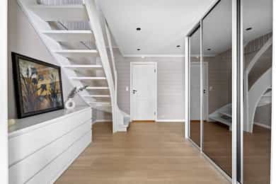 Hall: nytt gulv med gulvvarme og malte vegger og himling.