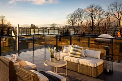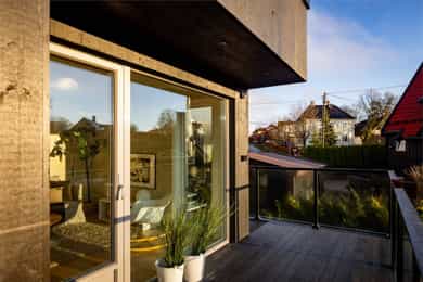 Eksklusiv og luftig 3-roms fra 2025 med balkong + privat takterrasse med flott utsikt. 2 sov/2 bad. Garasje og bergvarme