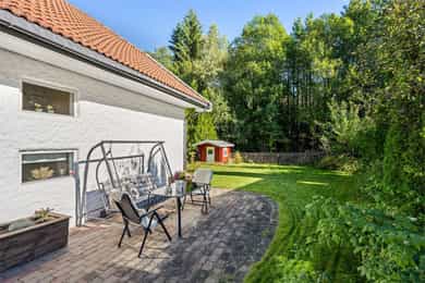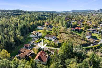 Innholdsrik familiebolig med 5 soverom, 3 bad og dobbelgarasje m/lader. Barnevennlig beliggenhet i blindvei ved skogen