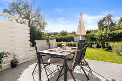 Attraktivt rekkehus m/barnevennlig beliggenhet i blindvei -Solrike uteplasser og hage -Parkering m/el -Rolig beliggenhet