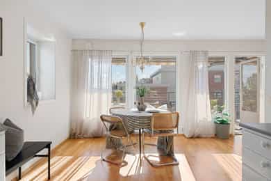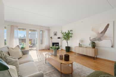 Velholdt og romslig 3-roms topp- og endeleilighet med to balkonger, garasjeplass og attraktiv beliggenhet på Sogn/Gaustad. Boligen har en velfungerende planløsning, og inneholder entré, åpen kjøkken- og stueløsning, to soverom og to bad.