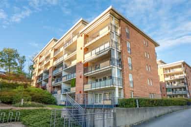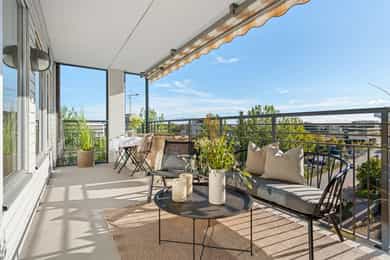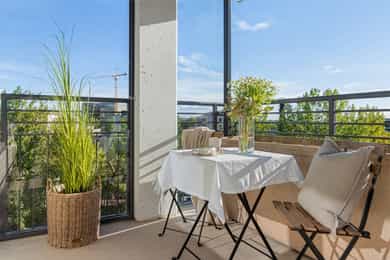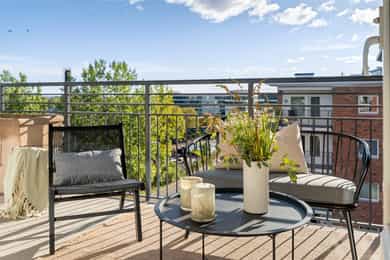 Lys og velholdt 3-roms topp- og endeleilighet - Stor, solrik balkong på 15 kvm. - Garasje - Heis - Frodige fellesarealer