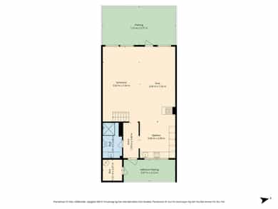 Garasjen har hems med ikke målbare arealer (ALH). Gulvarealet (GUA) er målt til 9 kvm.
