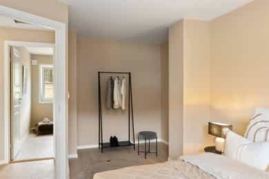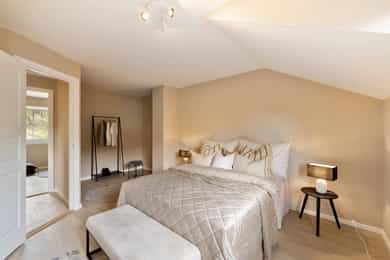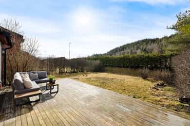 1. ETASJE Entré: Velkommen! Boligen har et innbydende inngangsparti, med hyggelig adkomstterrasse på 12 m². I tillegg er det tilgang til en utvendig bod på 5 m². Vel inne i entréen er det plass til å henge fra seg yttertøy og sette fra seg sko. Stue: Videre forbi entréen ligger stuen. Rommet er i åpen løsning mot kjøkkenet, og har flere innredningsmuligheter. Det er god plass til sofaseksjon, tv-møbel og spisegruppe. I rommet er det tilkoblet en peisovn, denne sikrer ekstra varme i vinterhalvåret. I tillegg er det trapp opp til 2. etasje. Fra stuen er det utgang til en herlig terrasse. Terrassen måler 29 m², og har god plass til utemøbler. Fra terrassen er det videre tilgang til hagen, som er fint skjermet med hekk. Kjøkken: Kjøkkeninnredning fra 2026 med laminert benkeplate med nedfelt oppvaskkum med 1-greps blandebatteri. Hvitevarene er integrerte og består av oppvaskmaskin, stekeovn, kombiskap og nedfelt platetopp med integrert ventilator over. Bad: Bad fra 2025 med fliser på gulv og vegger. Innredningen består av et underskap, servant, speil med lys, stikk og en dusjsone med dusjing direkte på gulv og vegg. Det er opplegg for vaskemaskin og det er tilkoblet et vannklosett. Rommet har naturlig ventilasjon. 2. ETASJE Gang: Fra trappen kommer man opp i en gang. Herfra er det inngang til et bad, samt tre soverom. Tre soverom: Boligen har tre soverom. Hovedsoverommet har plass til dobbeltseng med tilhørende nattbord. Videre er det plass til garderobeløsning. Soverom nr. 2 og 3 fungerer ypperlig som barnerom, gjesterom eller kontor - her er mulighetene mange. Rommene har plass til seng, nattbord, garderobeløsning og evt. skrivebord. Fra det ene soverommet er det i tillegg utgang til en herlig veranda på 8 m², med fint utsyn. Bad: Bad fra 2025 med fliser på gulv og vegger. Innredningen består av et underskap, servant, speil og en dusjsone med dusjing direkte på gulv og vegg. Det er tilkoblet et vannklosett. Rommet har fuktstyrt vifte. Innvendige overflater: Gulv: Laminatgulv. Vegger: Malte glatte flater. Himling: Malte glatte flater. Stedvis montert downlights. For full oversikt over tilstandsgrader, se punktet Byggemåte eller se vedlagt tilstandsrapport.