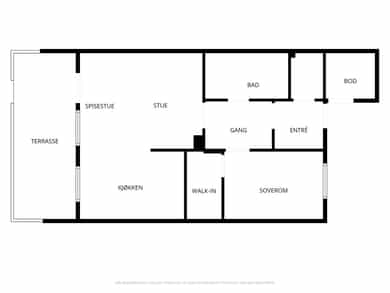 BRA-i: 60 kvm. Vindfang, gang, stue/kjøkken, soverom, bad/vaskerom, garderobe og bod.