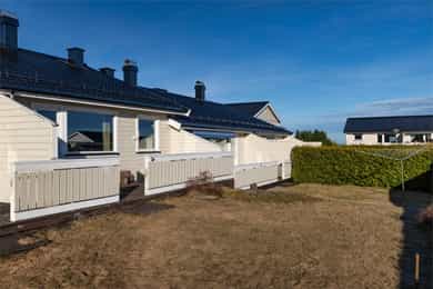 Eiendommen ligger på en pent opparbeidet og barnevennlig fellestomt. Boligen har en herlig, sørvendt treterrasse på ca. 16 m² med utgang fra stuen. Terrassen fungerer som en forlengelse av stuen i sommerhalvåret og er en lun og solrik uteplass. Ved inngangspartiet er det også lagt til rette for en hyggelig uteplass hvor man kan nyte morgenkaffen på fine dager. Til leiligheten medfølger en praktisk utvendig bod med strøm, samt parkeringsplass i felles garasjerekke.