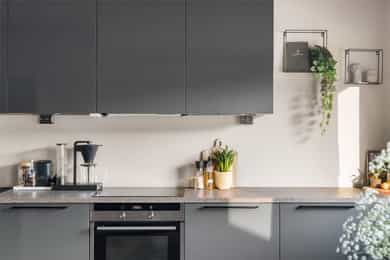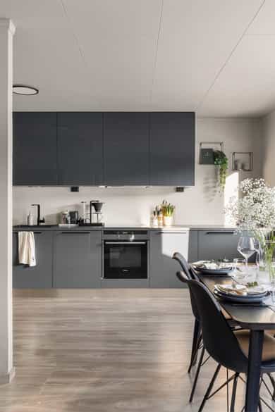 Følger med: Kjøleskap, oppvaskmaskin, komfyr og kokeplate.