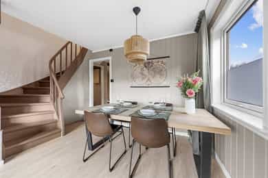Pent 3-roms enderekkehus i populært boområde - Solrik og sørvendt - Bad fra 2023 - Lav fellesgjeld/felleskostnader