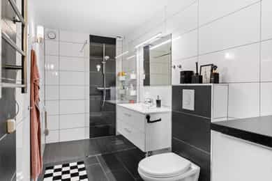 Velkommen til Heggveien 4 – en påkostet, hel tomannsbolig med høy standard og tre innholdsrike etasjer. Beliggenheten er naturnær og barnevennlig, med kort gangavstand til skoler, barnehager, tursti og svømmehall. Videre kan eiendommen skilte med en stor, flott dobbelgarasje, stor, steinbelagt gårdsplass, solrik og velstelt hage og en fantastisk takterrasse med egen, skjermet hagestue. Kort fortalt: - Hel tomannsbolig med høy standard - 2 flotte utleiedeler i underetasjen (Godkjente) - Stor dobbelgarasje på ca. 113 kvm - Naturnært og barnevennlig område - Solrik og velstelt tomt på 1061 kvm - Steinbelagt uteplass ved hybel&utleiedel - Vestvendt takterrasse på ca. 32 kvm - Hagestue på 13 kvm på takterrassen - Pen entré med varme i flislagt gulv - Lekkert, påkostet Ernestrust-kjøkken