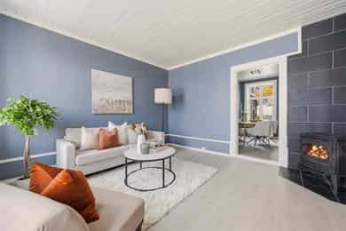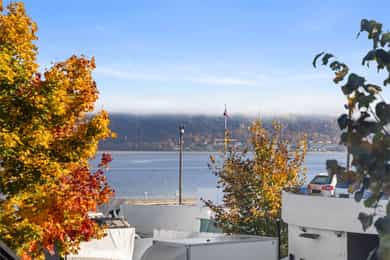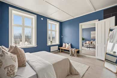 Flott selveierleilighet i sjarmerende bygg med romslige rom, god takhøyde og klassisk preg - Peis - Fjordutsikt