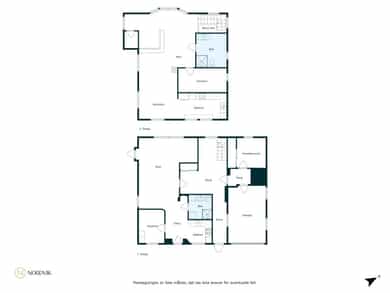 1. etasje: Entré, gang, kjøkken, 2 soverom, bad/vaskerom, garasje og bod 2. etasje: Stue, kjøkken, soverom og bad/vaskerom
