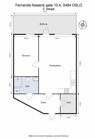 BRA-i: 59 kvm. Entré, stue/kjøkken, soverom, bad/vaskerom og bod