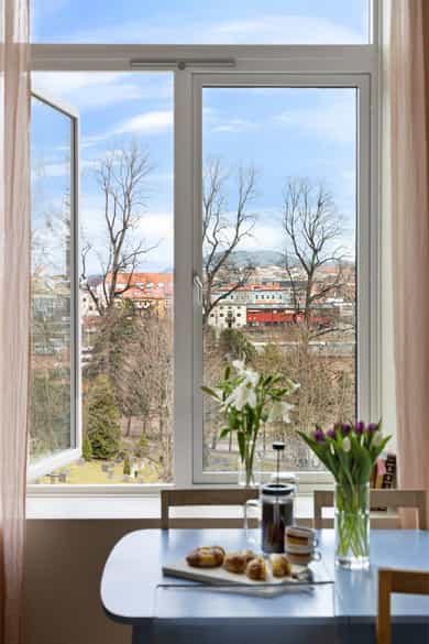 Tiltalende og moderne fabrikkleilighet med store vinduer, takhøyde over 3 meter og hems - Garasje - Heis - Sentrumsnær