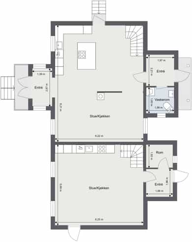 Leilighet/generasjonsdel: Entré, toalettrom/vaskerom og stue/kjøkken.