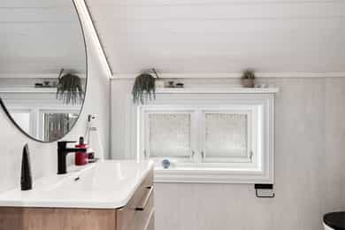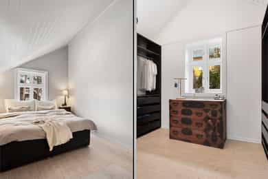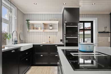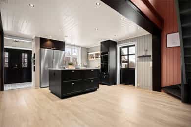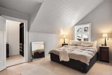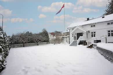 Tronvikveien 13 er en stor og innholdsrik eiendom bestående av romslig hoveddel samt egen, godkjent boenhet fra 2020, i dag benyttet som generasjonsbolig. Boligen byr på fleksible bruksmuligheter - enten for storfamilien, kombinert bolig og utleie, eller som egen avdeling for ungdom eller øvrig familie. Eiendommen har en stor og solrik hage med gode uteplasser samt parkering på egen gårdsplass. I 2021 ble gårdsplassen steinsatt og opparbeidet, ny plen lagt og terrenget tilpasset med støttemur for parkering. Boligen er løpende vedlikeholdt, og hele huset ble malt i 2023. Det ble samtidig montert nye beslag og takrenner. Opprinnelig bolig (hoveddelen) har blitt betydelig renovert innvendig. Alt av rør inne i huset og helt ut til hovedledninger ble fornyet i 1999. Det elektriske anlegget ble samtidig oppgradert. Strømmen ble byttet i 1999, og alt ble trukket på nytt i 2020. Det ble montert nye vinduer og dører, alle bjelkelag ble forsterket, og det ble lagt nye gulv og vegger. Yttervegger og tak ble etterisolert, og alle overflater ble fornyet. Alle boligens våtrom har vinyl med opprett og er sveiset av fagarbeidere. El-, rør- og våtromsarbeider er utført av fagfolk, mens øvrig snekkerarbeid er utført av eier. HOVEDDEL • 1. etasje: Boligens hoveddel har to separate innganger, én mot syd og én mot nord. Inngangspartiet mot vest er lunt og innbydende, med mønstret fliser med varme, panelkledde vegger og skrått tretak som gir rommet særpreg. Allerede ved første møte får man en forsmak på boligens gjennomførte stil. Doble ytterdører og god takhøyde skaper et romslig førsteinntrykk, og det er god plass til oppbevaring og sittebenk. Inngangen mot nord ble tilbygget i 1999. Herfra er det adkomst til toalettrom/vaskerom, opprinnelig fra 1999. Rommet har varmekabler i gulv, opplegg for vaskemaskin, servant og gulvmontert toalett. I 2020/2021 ble gulvet flytsparklet og det ble lagt nytt sveiset vinylbelegg. Boligens hoveddel byr på en romslig og sosial stue- og kjøkkenløsning. Det åpne rommet nås naturlig fra begge inngangspartier, og planløsningen gir god flyt mellom sonene. Det ble lagt nytt gulv i hele denne etasjen i 2025. Det er utstrakt bruk av downlights i himlingen og synlige kontrastbjelker. Peisen ble bygget opp av fagfolk i 2020, og fungerer som et naturlig romskille mellom stue- og kjøkkendel. Pipa ble pusset utvendig fra topp til bunn i 1999. Kjøkkenet fra 2020 fremstår som et gjennomført element i boligen. Innredningen har mørke, klassiske fronter med profilerte skuffer og skap, kombinert med lys kvarts benkeplate som gir en tydelig kontrast. Det er god arbeidsplass både langs vegg og på kjøkkenøya. Øya fungerer som rommets naturlige samlingspunkt og har integrert kokesone med ventilator. Langs vindusveggen er det dobbel oppvaskkum med utsyn mot hagen, og over benken er det åpne hyller som gir rom for både oppbevaring og dekor. Integrerte hvitevarer består av platetopp, stekeovn og oppvaskmaskin, samt frittstående kjøl-/fryseskap. Det er montert komfyrvakt og waterguard. Fra kjøkkenet er det utgang til uteplass og hage. • 2. etasje: En flott, bevart trapp fører opp til øvre etasje. Trappen understreker boligens preg med dreide spiler og mørk utførelse. I trappeoppgangen er det god takhøyde, og i mellomgangen finnes loftsluke. Etasjen ble etterisolert ved renoveringen i 1999-2000, med 10 cm i reisverk, 15 cm i skråtak og 15 cm i himling. Boligens romslige bad er fra 2003. I perioden 2020/2021 ble gulvet flytsparklet, det ble lagt nytt sveiset vinylbelegg og dusjhjørnet ble flislagt. Badet har god takhøyde med skråtak og synlige, mørke takbjelker. Rommet inneholder servantseksjon med skuffer og speil med tilhørende hyller, dusjhjørne med inn- og utadslående glassdører, samt frittstående badekar. Etasjen rommer i dag tre gode soverom. Hovedsoverommet fremstår som romslig og innbydende med malte panelvegger og god plass til dobbeltseng og oppbevaring. Langs den ene veggen er det et romslig, åpent garderobeskap med tilhørende lukket modul som gir gode oppbevaringsmuligheter. Soverom to og tre er tilnærmet like store og fremstår lyse og trivelige med malte panelvegger og skråtak. Ett av soverommene har takvindu, og fra dette rommet er det innvendig adkomst via lukket dør til leilighet/generasjonsdelen. LEILIGHET/GENERASJONSDEL • 1. etasje: Denne delen ble oppført i perioden 2010-2012 med stue i 1. etasje og soverom i 2. etasje. I 2020 ble boligen ombygget og samtidig godkjent for to boenheter. Det er lydisolering mellom enhetene med lydbøyler og gips i tak i 1. etasje samt lydplater i gulv i 2. etasje. Det er lagt varmekabler i hele underetasjen, og hver boenhet har eget sikringsskap og tilgang til egen uteplass. Denne delen har egen inngang og fremstår med panelkledde vegger og vinylgulv med varme. Toalettrom/vaskerom ligger rett ved inngangen. All infrastruktur ble lagt ferdig i gulv og vegger i 2021, og det ble lagt vinylgulv i 2026. Rommet har varme i gulv og inneholder servant med skap, gulvmontert toalett, speil og opplegg for vaskemaskin. Det er installert elektrisk styrt avtrekksvifte. Stuen har en åpen løsning mot kjøkkenet. Det er downlights i himling, og planløsningen gir naturlig plass til både sofagruppe og spisebord. Fra stuedelen er det direkte utgang til uteområde, noe som gir en fin overgang mellom inne- og uterom. Kjøkkenet i denne delen er fra 2020. Innredningen har laminerte skrog og slette fronter, kombinert med laminat benkeplate og nedfelt oppvaskkum. Løsningen er arealeffektiv og kompakt langs veggen og gir gode arbeidsflater og oppbevaringsmuligheter. Integrerte hvitevarer består av platetopp med ventilator, stekeovn, mikroovn og oppvaskmaskin, samt frittstående kjøl-/fryseskap. Det er montert komfyrvakt og waterguard. • 2. etasje: Denne etasjen har lydplater på gulv. Vel oppe er det lukket dør med adkomst til hoveddelens soverom to. Badet har varme i gulv og vinylbelegg