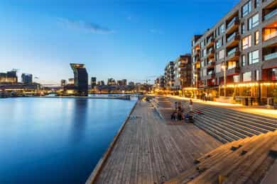 Bjørvika er på kort tid blitt rikskjent for sin unike arkitektur her til lands, og ikke minst også på grunn av den rivende byutviklingen som foregår langs sjøen. I den nye Fjordbyen vil du bo tett på sjøen, i byens kanskje mest spennende utviklingsområde. Her vil det i tiden som kommer anlegges flotte fellesarealer langs vannet med havnepromonade fra Sørenga til Frognerkilen, nye små kanaler og et bredt spekter av nye service- og tjenestetilbud. Fjordbyen er i ferd med å bli en helt unik bydel med enestående beliggenhet, sentralt plassert i byens nye kultursentrum, med kort vei til et omfangsrikt shoppingtilbud og nær kollektive transportmidler. Naboskapet til Operaen og det nye Munch-museet, gjør Bjørvika til et stort og viktig element i det nye byrommet langs fjorden. Nye Deichmanske Hovedbibliotek i Bjørvika er en arkitektonisk perle og et eldorado for store og små. Følger du kyststien er veien kort også til det nye Nasjonalmuseet på Vestbanen. Underveis passerer du Operaen som i seg selv er verdt gjentatte besøk, både på taket utendørs som innendørs til de mange forestillingene. Området har et bredt utvalg moderne kafeer, restauranter og butikker. Meny har nettopp åpent en 1700 kvadratmeter stor matbutikk i Clemenskvartalet (Rostockgata 130), og her skal de satse på ferske råvarer, matglede og matkompetanse. Du vil blant annet finne slakterdisk, fiskedisk og ostedisk med stort utvalg av både klassikere og lokalmatprodusenter. Videre har Vinmonopol nylig åpnet en 500 kvadratmeter stor butikk i Clemenskvartalet, samt Apotek1 og restaurant Lut/Laget. Lutlaget (L/L) er åpent syv dager i uken, fra tidlig morgen til kveld. Her serveres deilig bakverk, bakt på stedet. L/L har også et brasseri, en vedfyrt pizzaovn, chambre separée og vinbaren Nosi. Kvartalet rommer også The Riot trenings- og behandlingssenter (åpner i august). Ellers finnes SATS og Barrys Bootcamp. Helt ytterst på Sørenga finner man Sjøbadet. Sjøbadet er et stort og åpent rekreasjonsområde med sitteplasser, stort basseng og eget barnebasseng. I midten av området finner man også sentralparken, områdets grønne lunge. I tillegg har man DNTS friluftshus mellom byggetrinn 6 og sjøbadet som tilbyr; innendørs trening, kajakk-kurs og utleie, klatrevegg innendørs og seminarer om frilufstliv etc. Det er kort vei til tur- og grønt områder og ikke minst øyene i Oslofjorden. Båtliv i Oslofjorden og rundt Sørengkaia om sommeren. Båtplasser finnes bl.a. på Hovedøya og på Ulvøya, begge i nærheten. Ønsker du et avbrekk i grønnere omgivelser kan du velge mellom flere gode alternativer, eksempelvis en spasertur oppover langs Akerselva, et besøk i Tøyenparken og Botanisk Hage, eller legg turen innom Middelalderparken med vannspeilet som viser vannlinjen slik den var i tidligere tider. Med nesten umiddelbar nærhet til Oslo S med alle kollektive transportmidler, inkludert Flytoget til Gardermoen, er tilgjengeligheten svært enkel og praktisk. Holdeplass for bytrikk og buss like utenfor. Med egen bil tar du deg raskt ut på E18 og videre til E6 eller ringveiene.