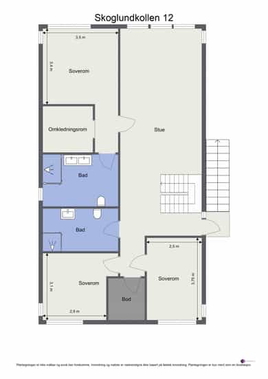 • 3 soverom samlet i øvre etasje og stue på begge plan.