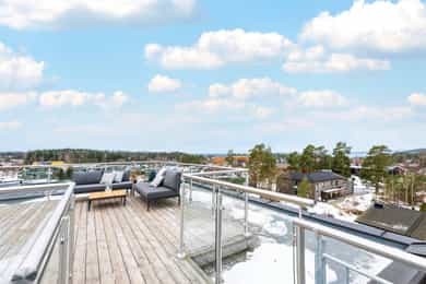Stilsikker enebolig fra 2021 m/terrasse på 56m² og takterrasse - Vannbåren varme og dobbel carport m/lader -Barnevennlig