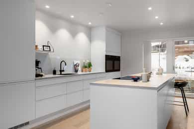 • Moderne og funksjonelt kjøkken med integrerte hvitevarer fra AEG.