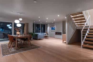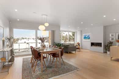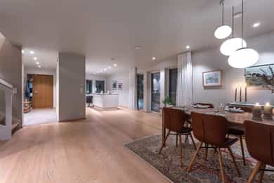 • 1-stavs parkett, vannbåren gulvvarme og gasspeis.
